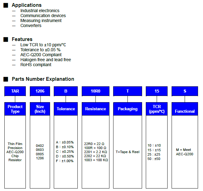 Thin Film Precision AEC-Q200 Chip Resistor